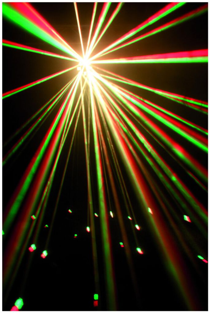 Met de meegeleverde afstandsbediening kies je eenvoudig uit verschillende programma’s, snelheden, kleuren en automatische of geluidsgestuurde modus. De ingebouwde microfoon laat de lasers op de maat van de muziek reageren – ideaal voor dansvloeren!